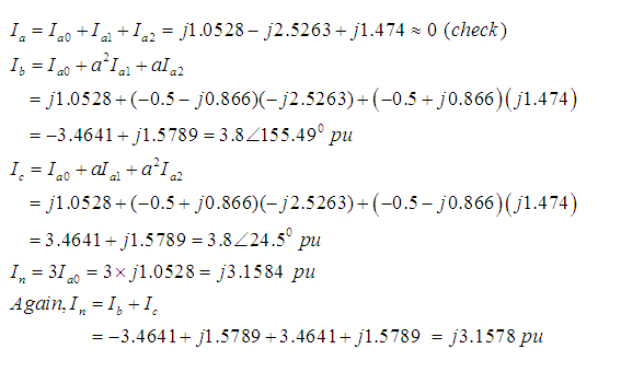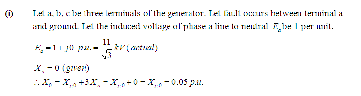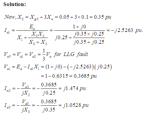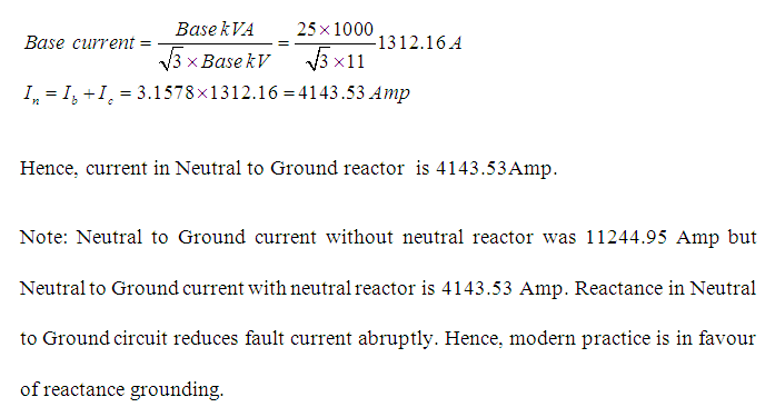 Problem 2: In Problem 1, if the neutral to ground circuit has reactance of 0.1 per unit instead of zero, then calculate fault current flowing through the neutral reactor.