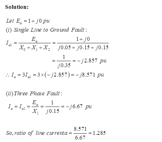Hence, Single line to ground fault current is 1.285 times three phase fault current.