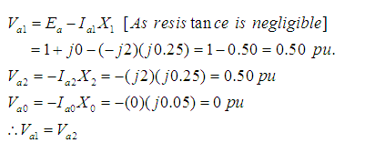 Problem 1: A 25 MVA, 11 kV, 3-phase alternator has direct axis sub-transient reactance of 0.25 per unit, negative sequence reactance and zero sequences are respectively 0.25 per unit and 0.05 per unit.