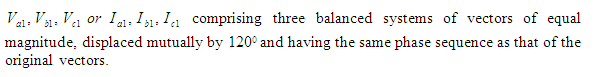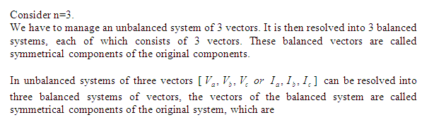 Suppose we have to manage an unbalanced system of n vectors. It is then resolved into n balanced systems, each of which consists of n vectors. These balanced vectors are called symmetrical components of the original components.