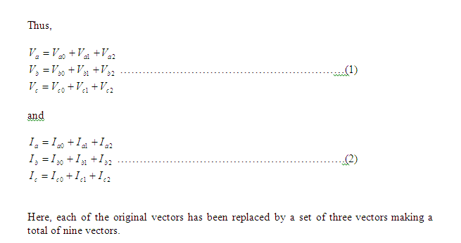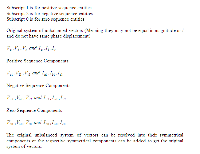The method of symmetrical components is a general one which is applicable to any polyphaser system. Here, symmetrical component equations will be developed in three phase systems for widespread use of three phase systems.